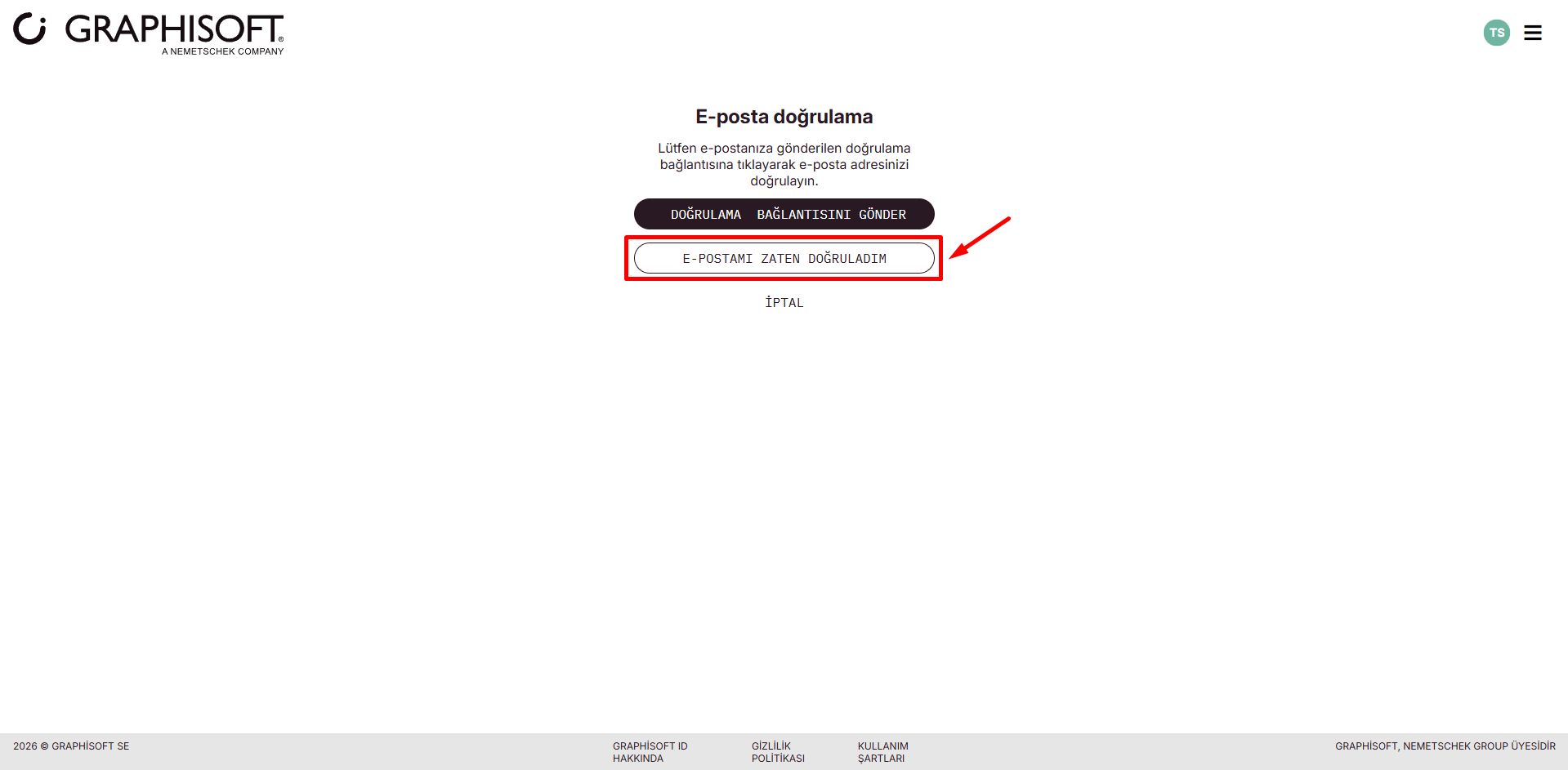 5- Eğer bu uyarıyı almadıysanız karşınıza e-posta doğrulama ekranı gelecektir. E-postanıza gelen doğrulama bağlantısına tıkladıktan sonra "E-POSTAMI ZATEN DOĞRULADIM" butonuna tıklayarak devam edebilirsiniz.