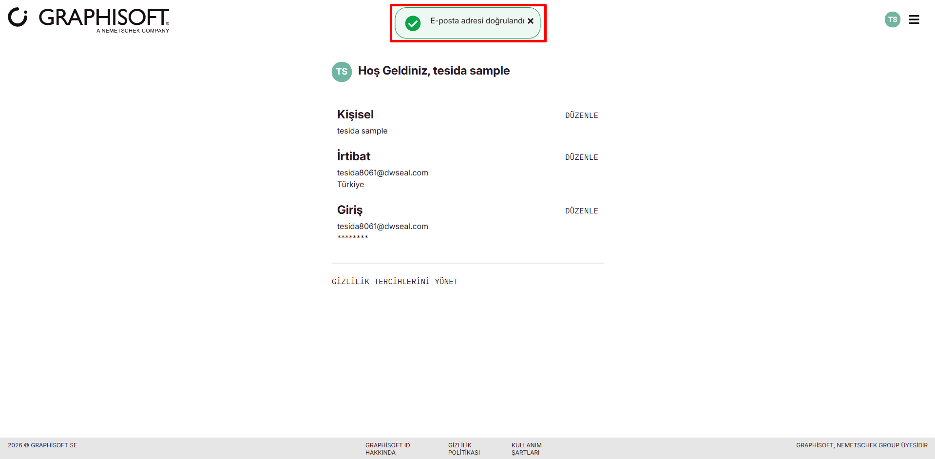 Graphisoft ID oluşturma işleminiz başarıyla tamamlandı.