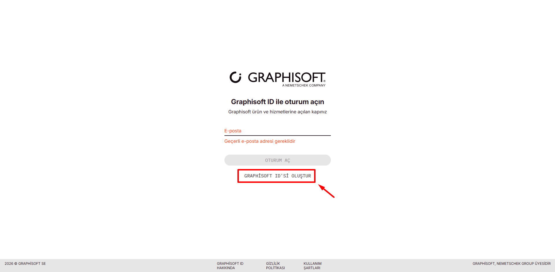 2- Açılan sayfada alt tarafta bulunan "GRAPHISOFT ID'Sİ OLUŞTUR" butonuna tıklıyoruz.