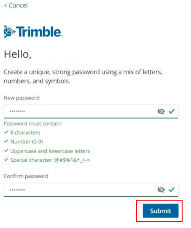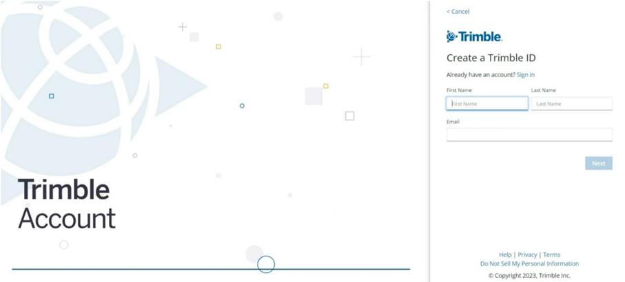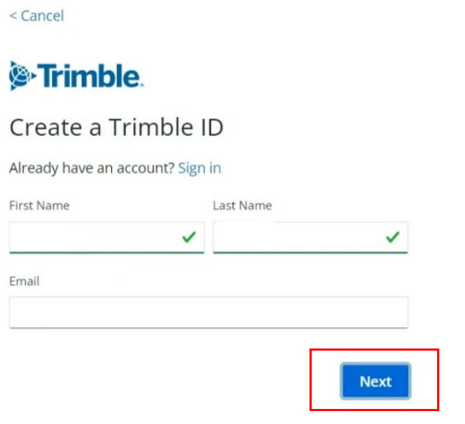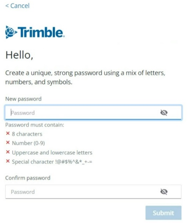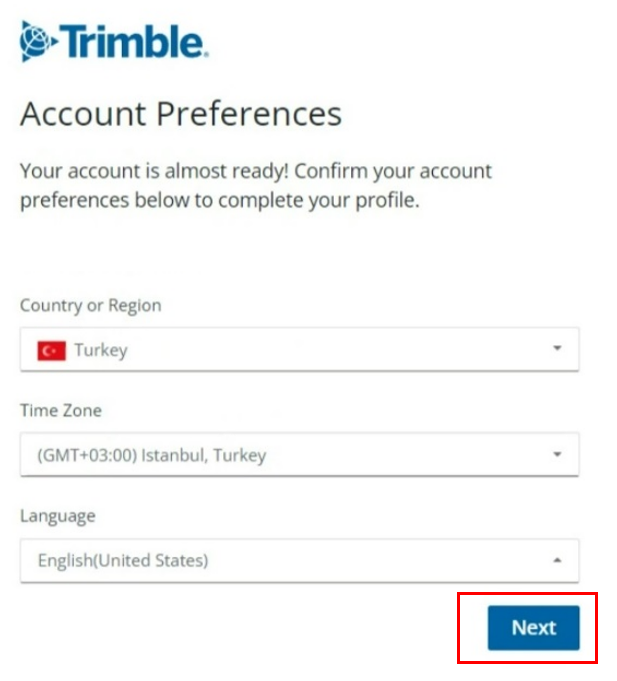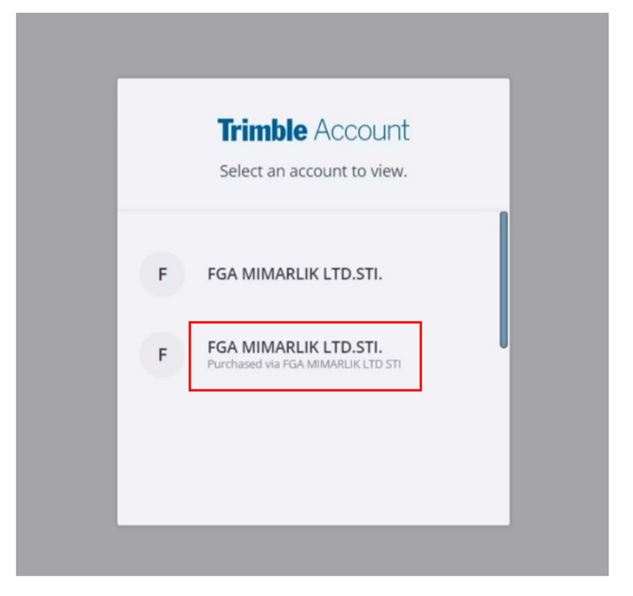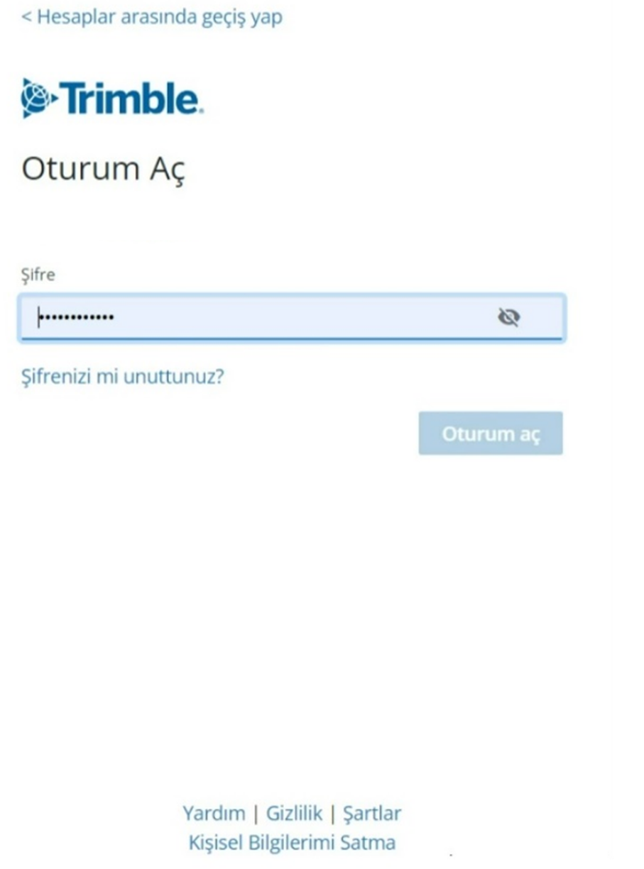 Artık Trimble hesabınız oluştu, purchased via yani satın