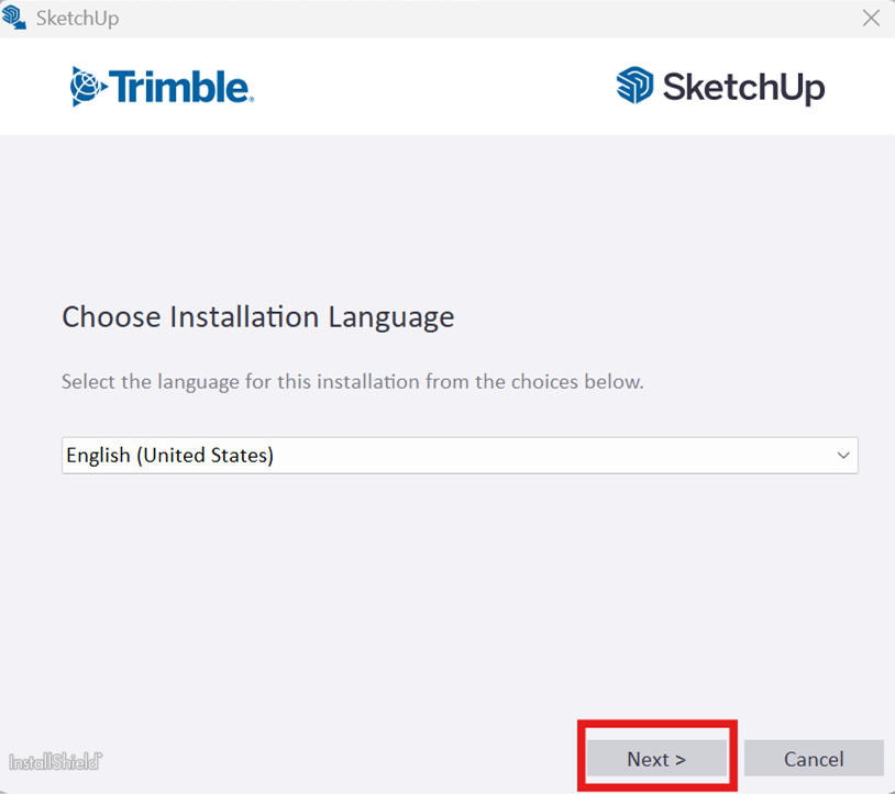 SketchUp kurulumunuzu başlatın, dil seçeneğini belirleyip next butonuna