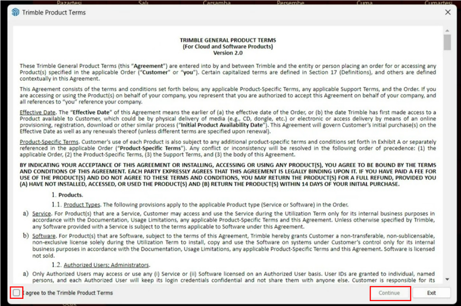 yaptıysanız sağ üstte lisans bitiş tarihiniz doğru gözükecektir, Trimble