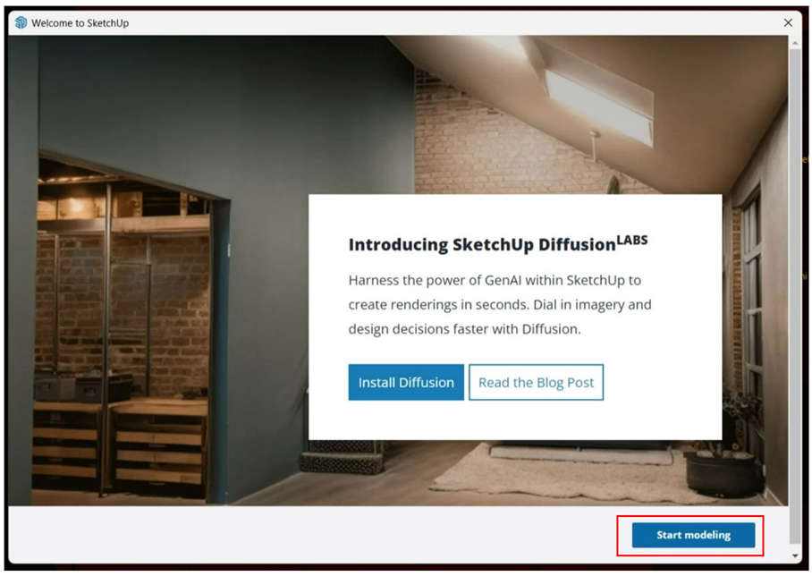 Start modeling’e tıklayıp SketchUp programında çalışmayı
